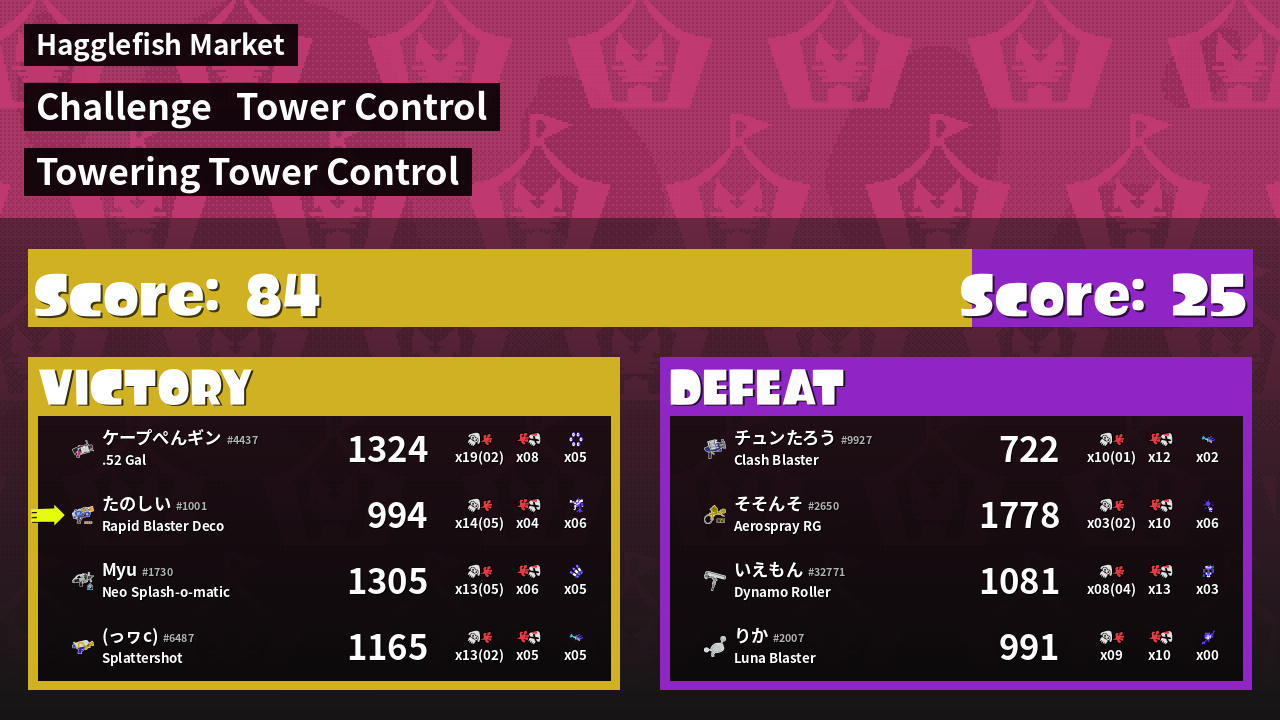 | Medals | Record-Score Setter #1 Popular Target #1 Splat Assister | ||
