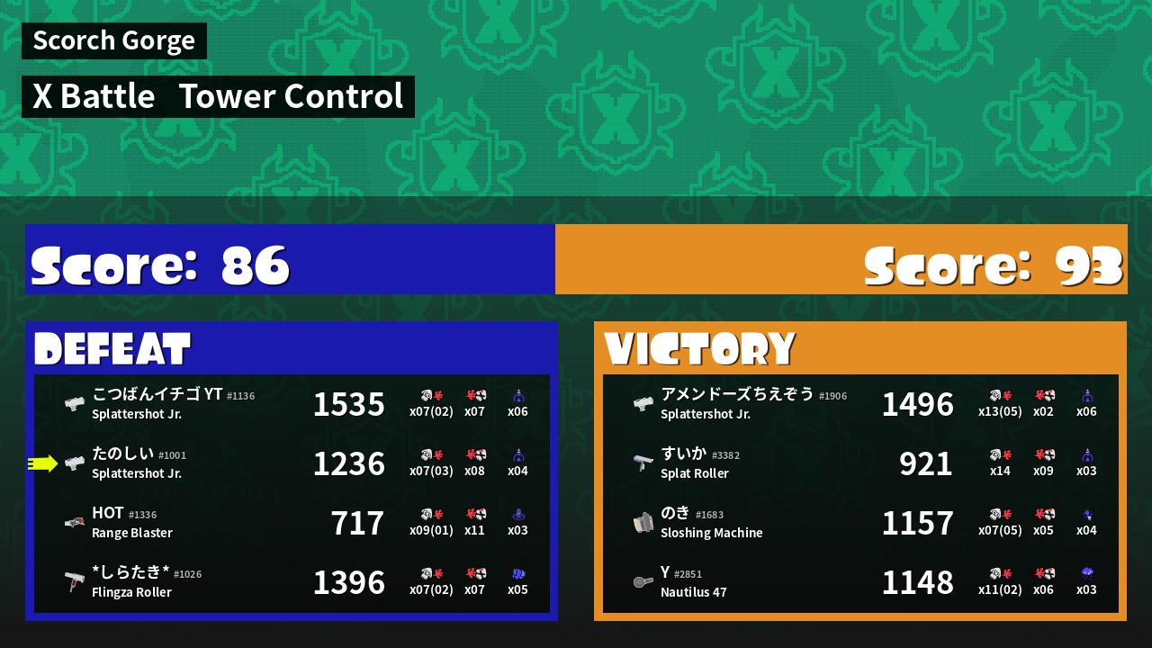 | Mode | Tower Control - X Battle | ||