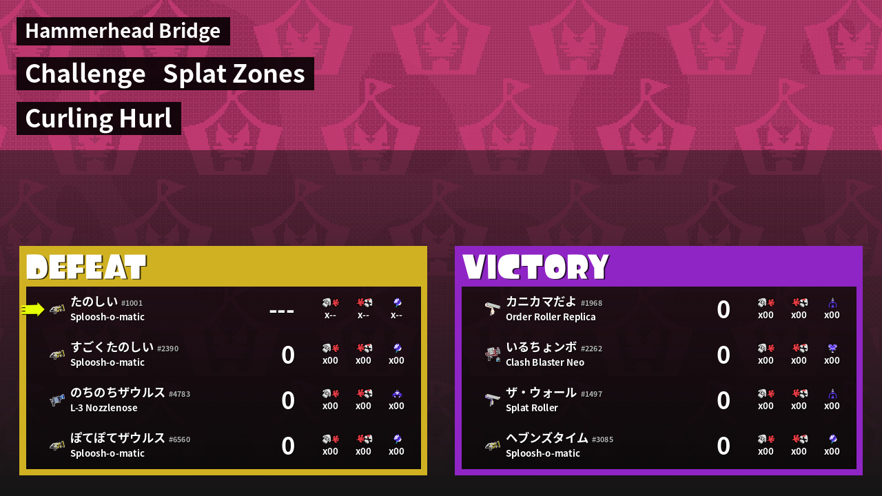 | Weapon | Sploosh-o-matic ( Curling Bomb / Ultra Stamp) | ||