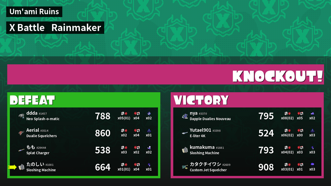 | Medals | #1 Splat Assister #1 Ink Consumer #2 Super Jump Spot | ||
