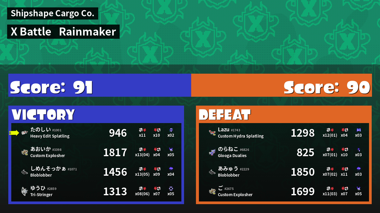 Kills / Deaths | 11 + 0 / 10 > Kill Ratio: 1.10 | ||