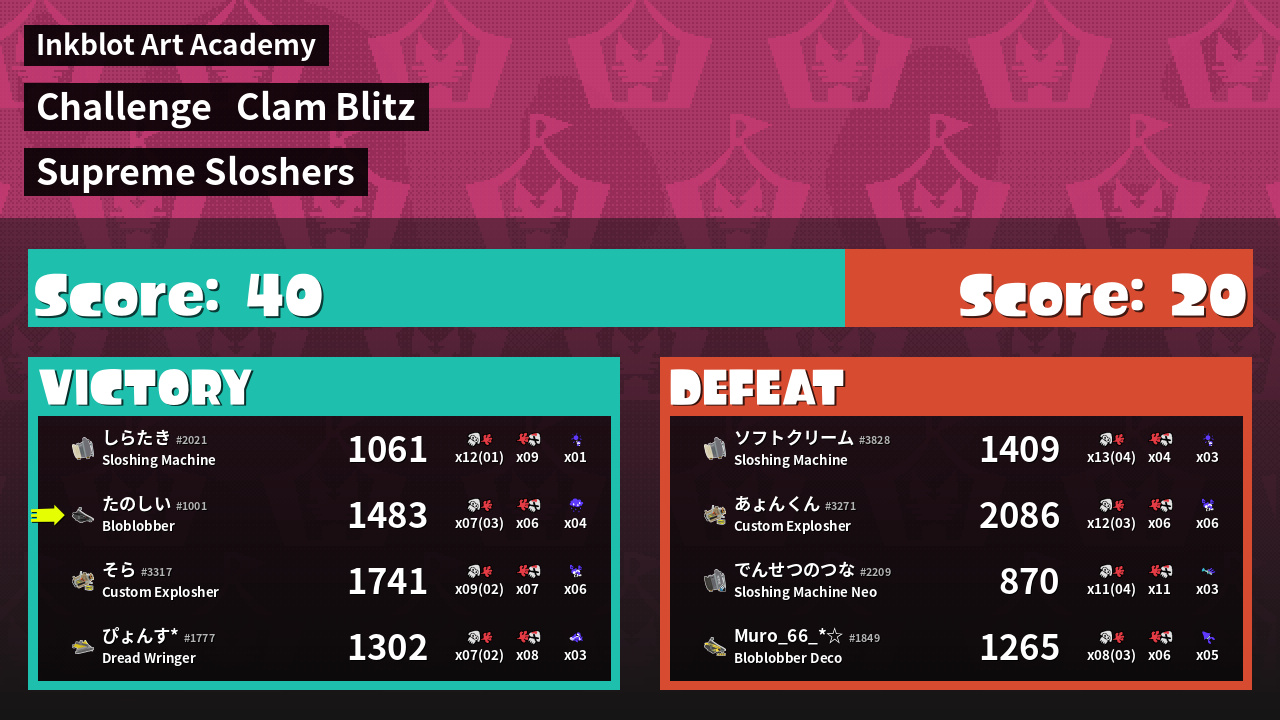 | Medals | #1 Score Booster #1 Clam Carrier #1 Splat Assister | ||