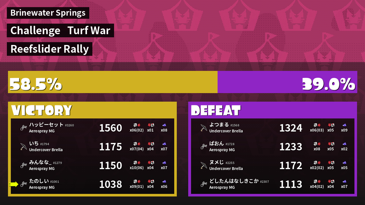 | Medals | #1 Enemy Splatter #1 Base Defender #1 Reefslider User | ||