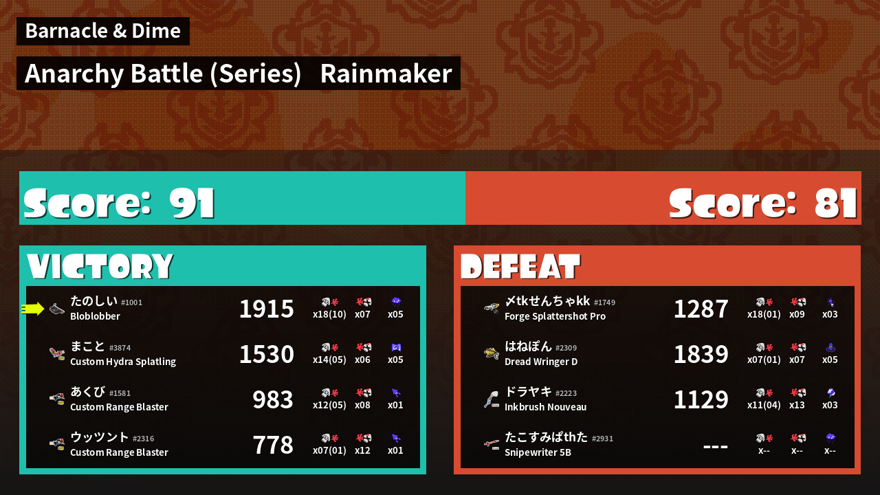 | Mode | Rainmaker - Anarchy Battle (Series) | ||