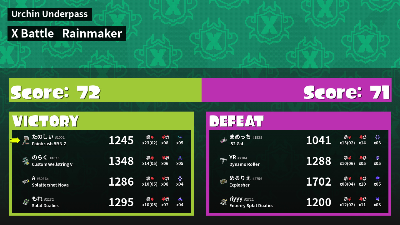 | Medals | #1 Overall Splatter #1 Popular Target #1 Enemy Splatter | ||