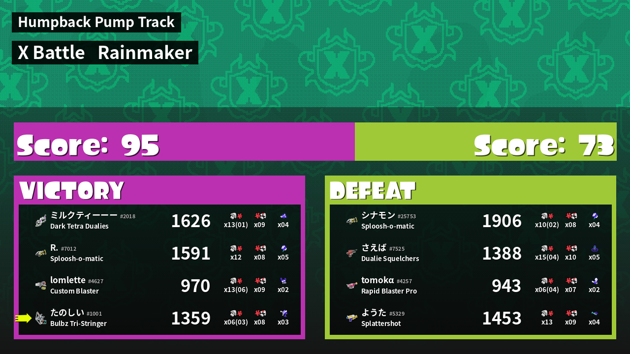 | Mode | Rainmaker - X Battle | ||