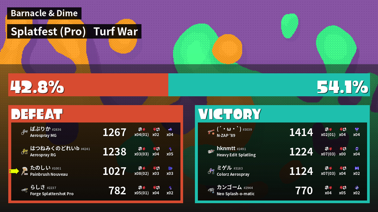 | Mode | Turf War - Splatfest (Pro) | ||
