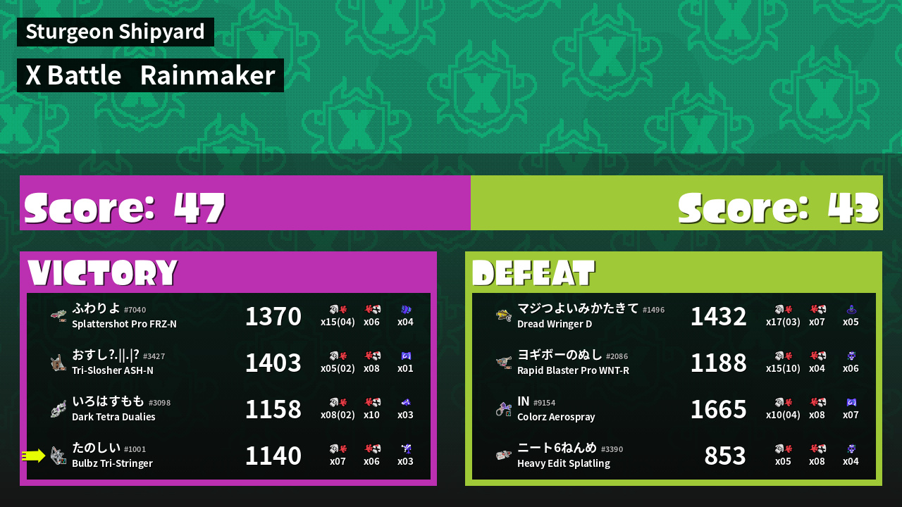 | Mode | Rainmaker - X Battle | ||
