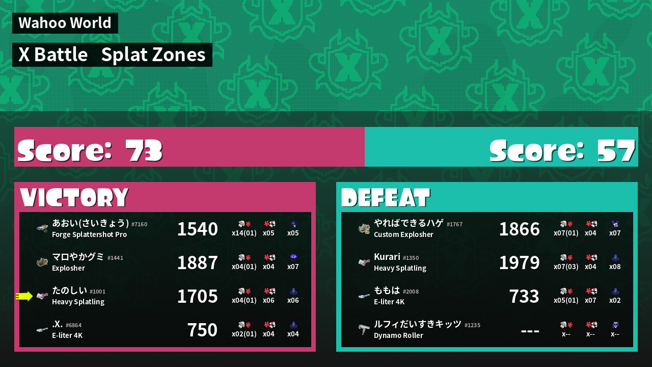 | Mode | Splat Zones - X Battle | ||