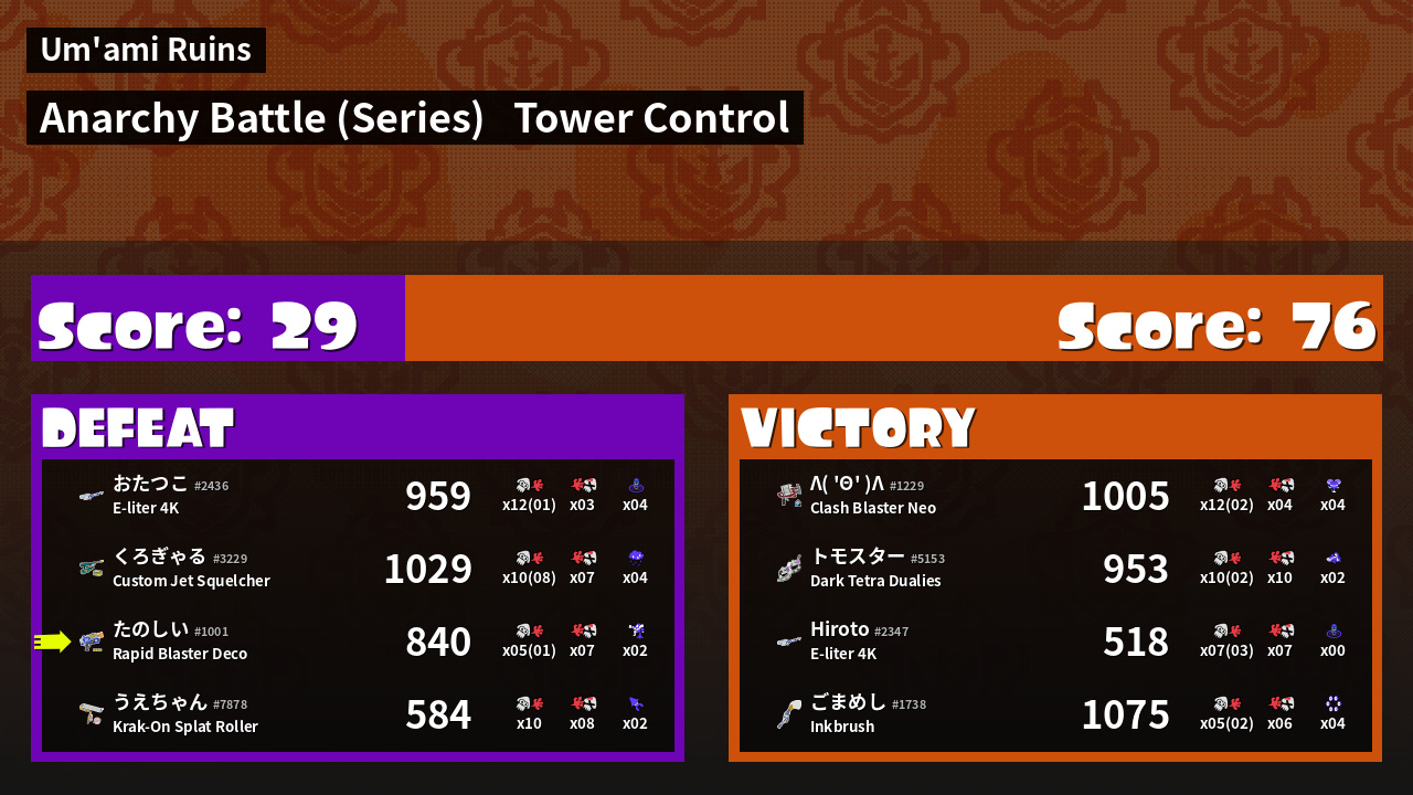 | Mode | Tower Control - Anarchy Battle (Series) | ||