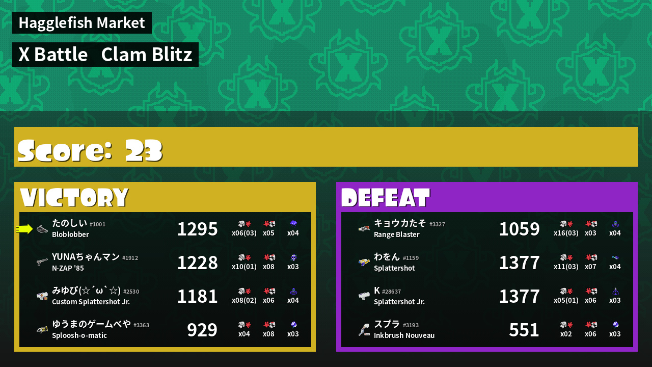 | Mode | Clam Blitz - X Battle | ||