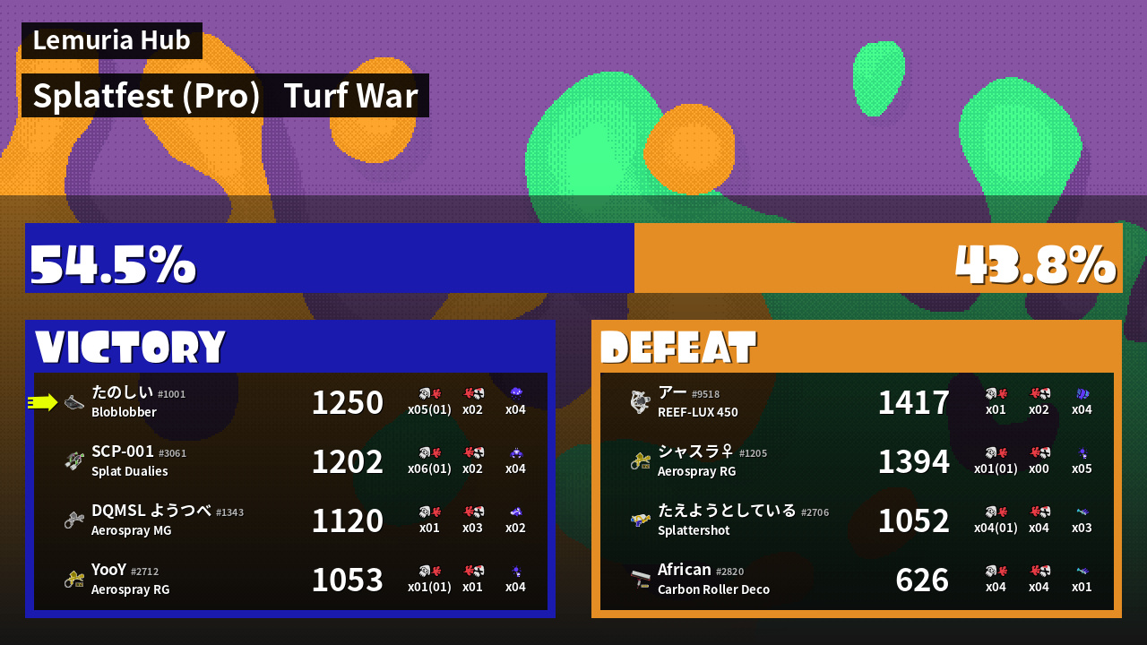 | Mode | Turf War - Splatfest (Pro) | ||