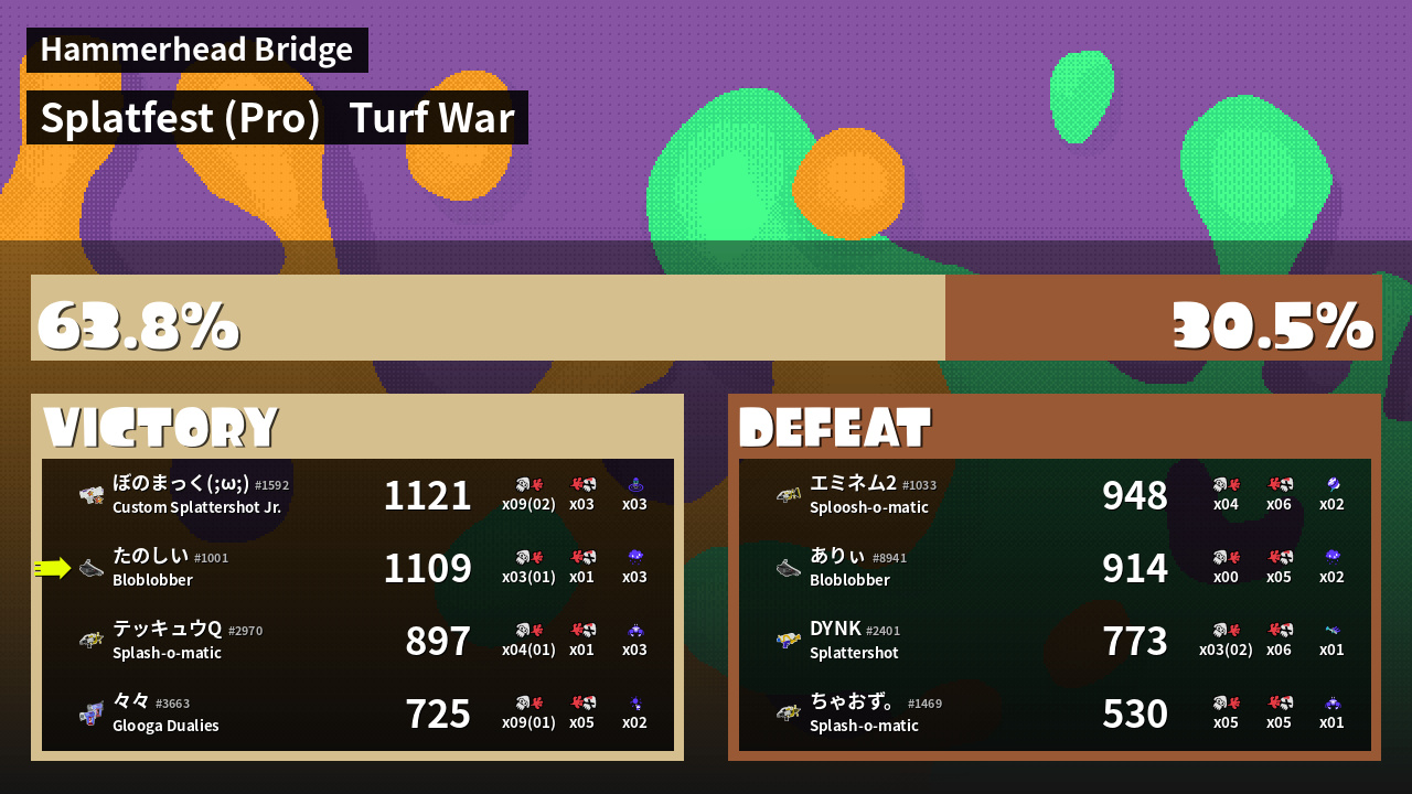 | Mode | Turf War - Splatfest (Pro) | ||