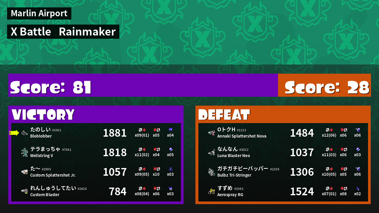 | Mode | Rainmaker - X Battle | ||