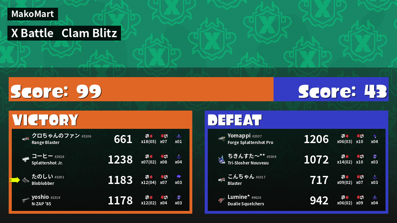 | Weapon | Bloblobber ( Sprinkler / Ink Storm) | ||