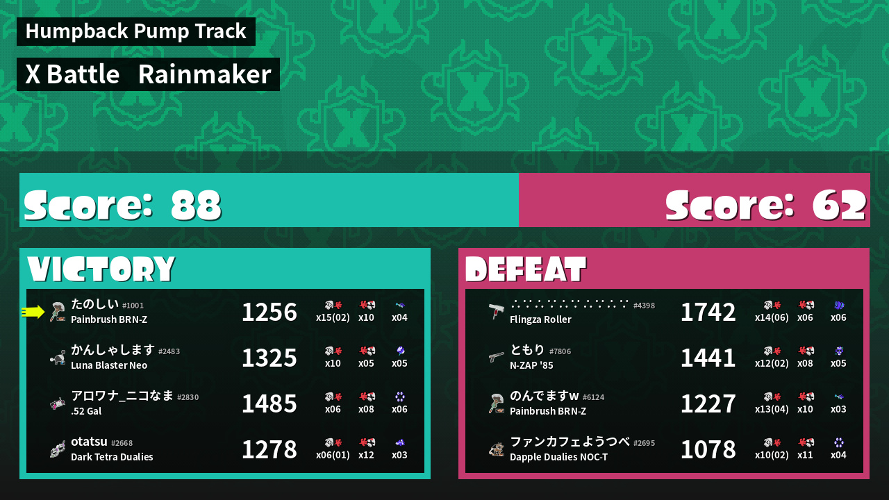 | Medals | #1 Overall Splatter #1 Popular Target #1 Enemy Splatter | ||
