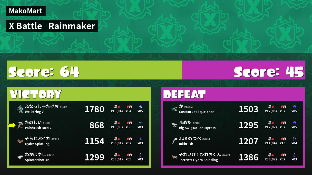 | Medals | #1 Super Jump Spot #1 Trizooka User #2 Overall Splatter | ||