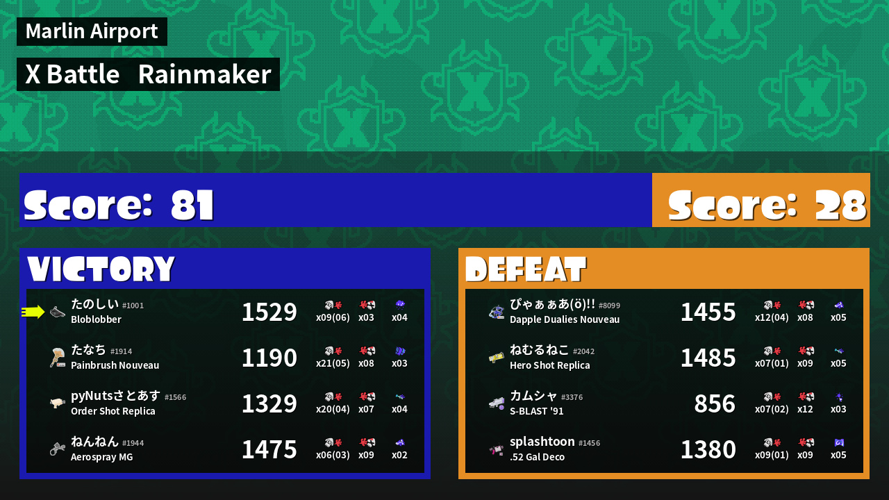 | Weapon | Bloblobber ( Sprinkler / Ink Storm) | ||