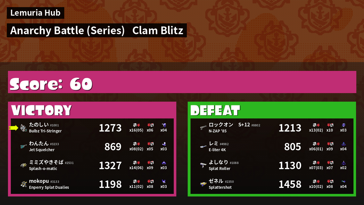 | Mode | Clam Blitz - Anarchy Battle (Series) | ||