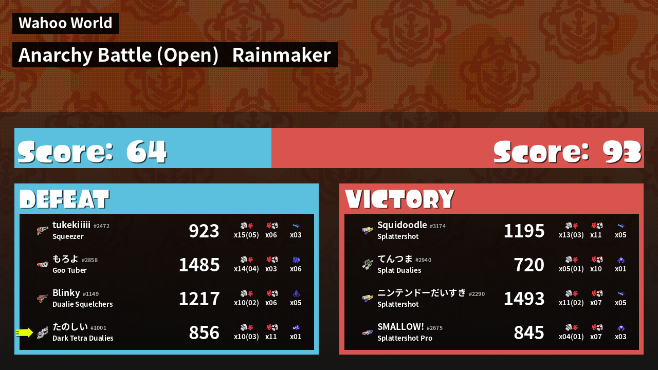 | Mode | Rainmaker - Anarchy Battle (Open) | ||