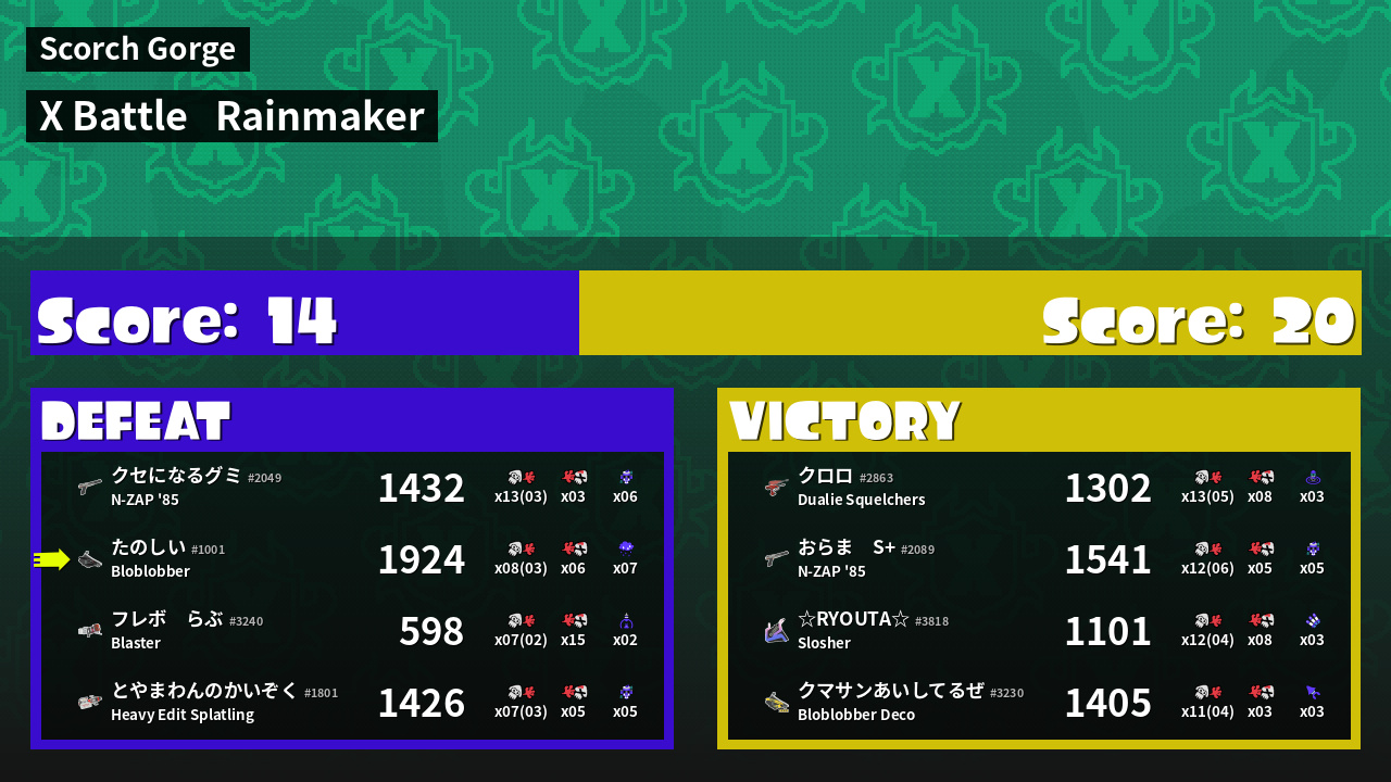 | Mode | Rainmaker - X Battle | ||