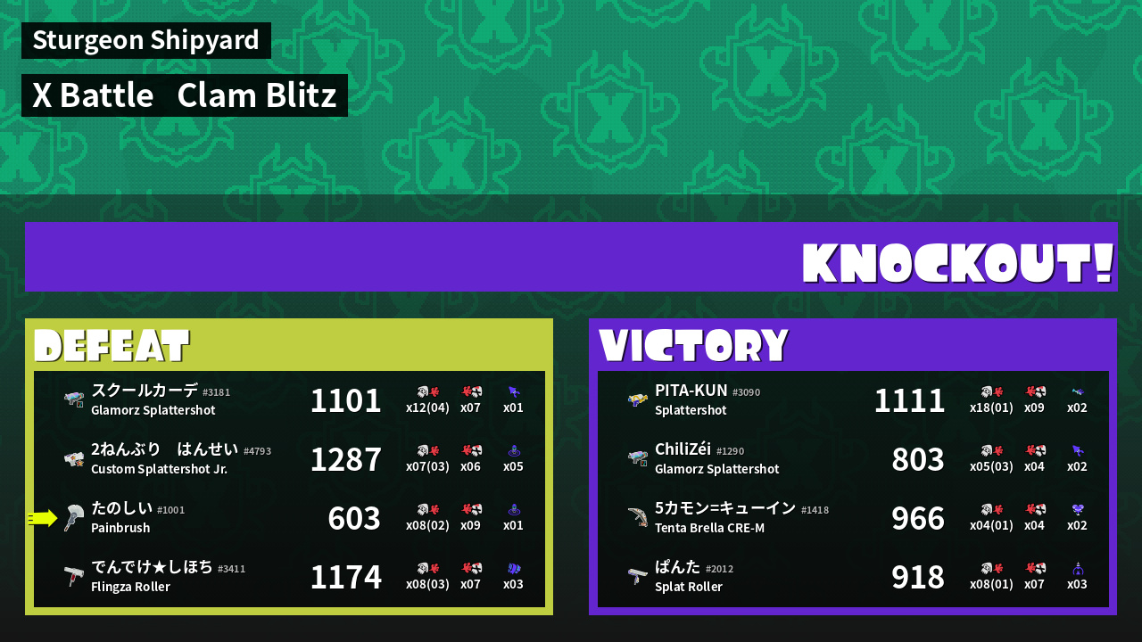 | Medals | #1 Score Booster #2 Overall Splatter #2 Clam Carrier | ||