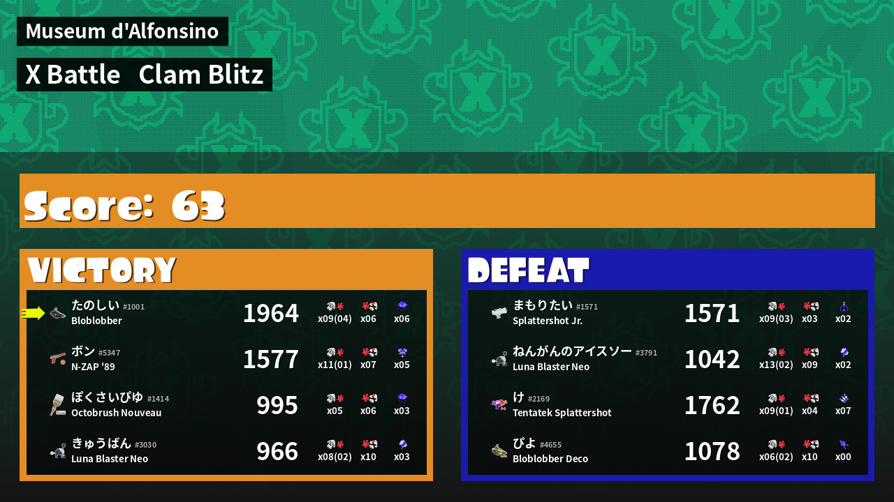 | Mode | Clam Blitz - X Battle | ||