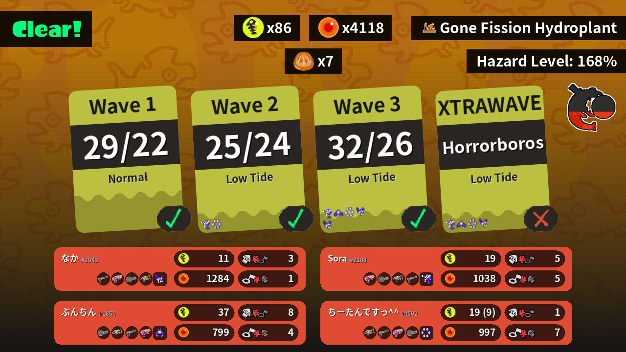 | Boss Salmonid | 18 | 21 | 13 | 14 |