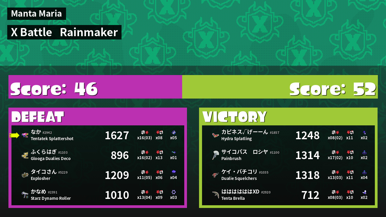 | Medals | #1 Overall Splatter #1 Turf Inker #1 Popular Target |