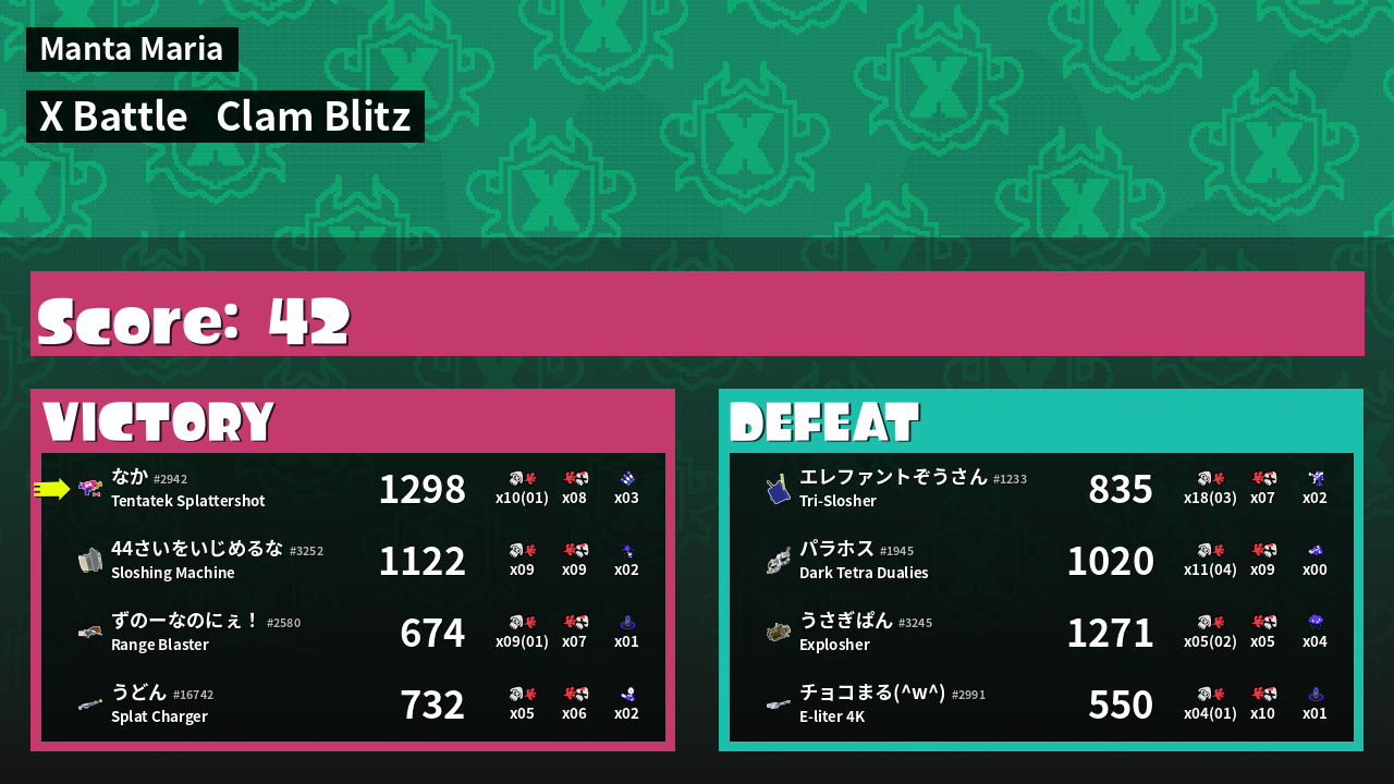 | Mode | Clam Blitz - X Battle | ||
