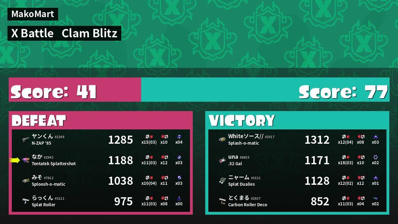 | Mode | Clam Blitz - X Battle | ||