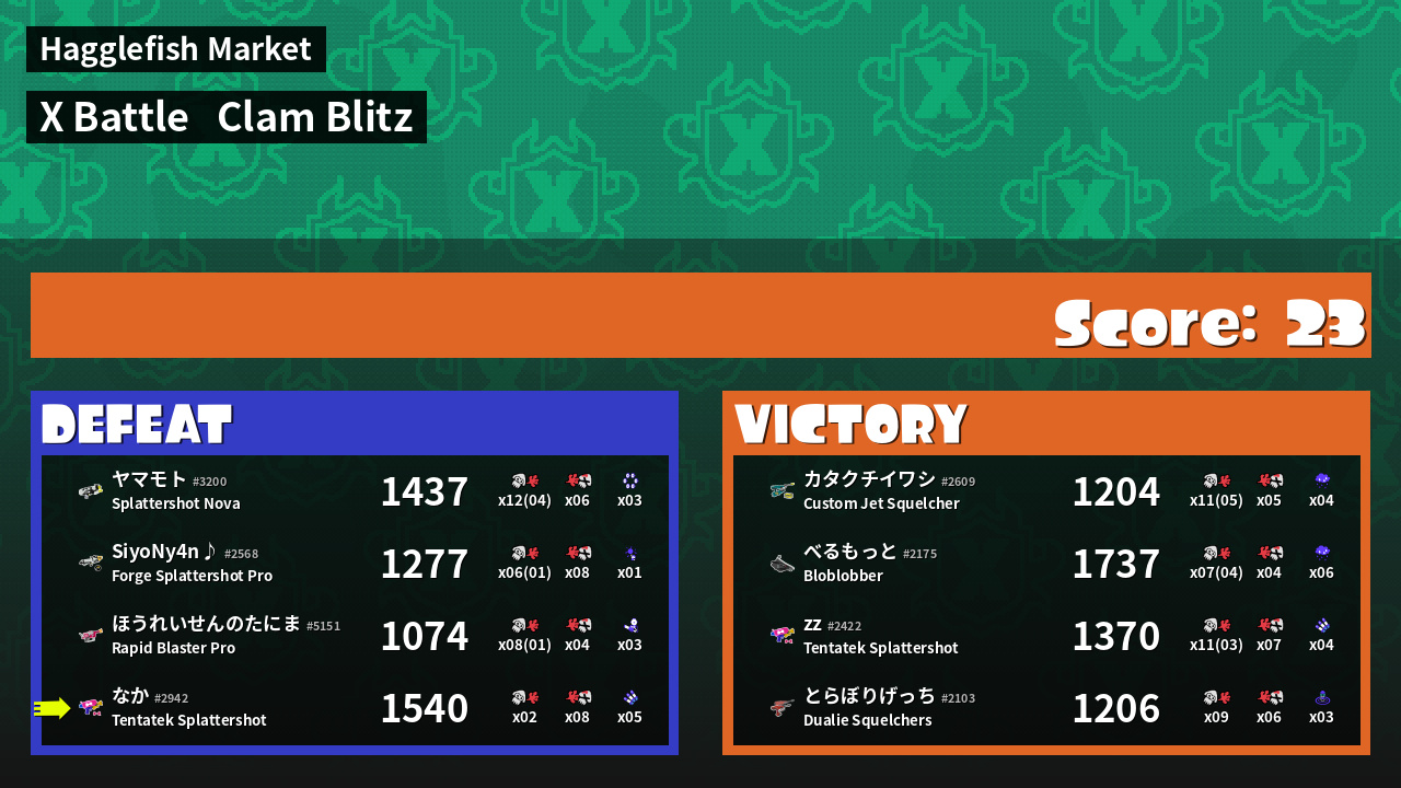 | Weapon | Tentatek Splattershot ( Splat Bomb / Triple Inkstrike) | ||