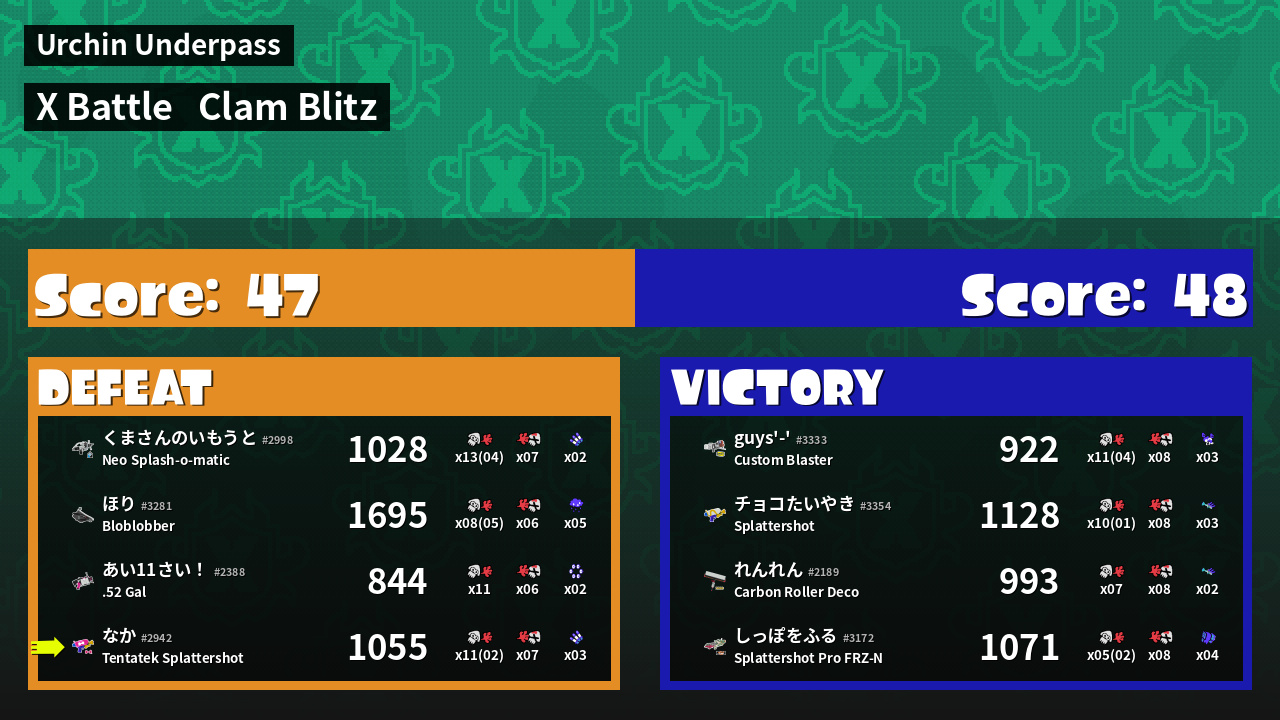 | Mode | Clam Blitz - X Battle |