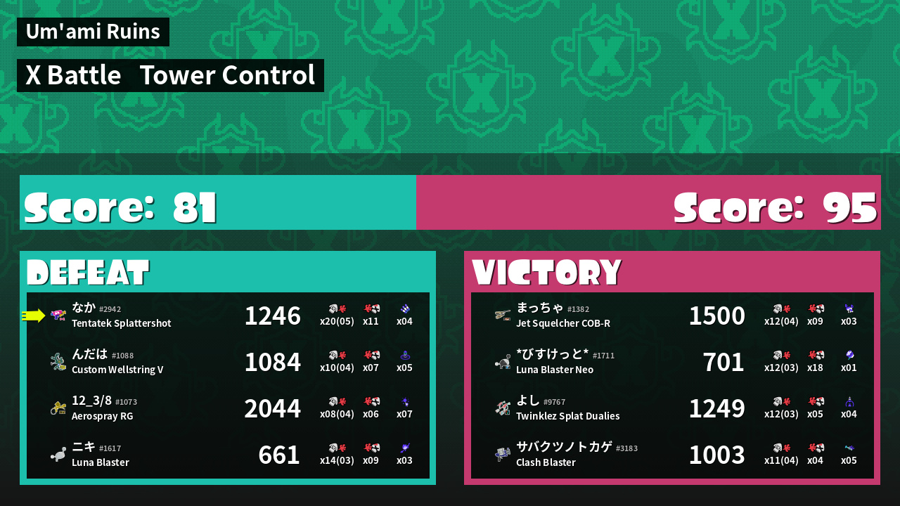 Kills / Deaths | 15 + 5 / 11 > Kill Ratio: 1.36 |