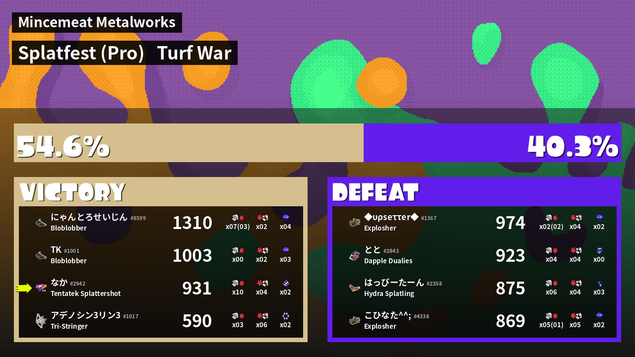 | Mode | Turf War - Splatfest (Pro) | ||