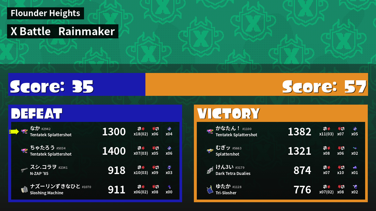 | Mode | Rainmaker - X Battle | ||