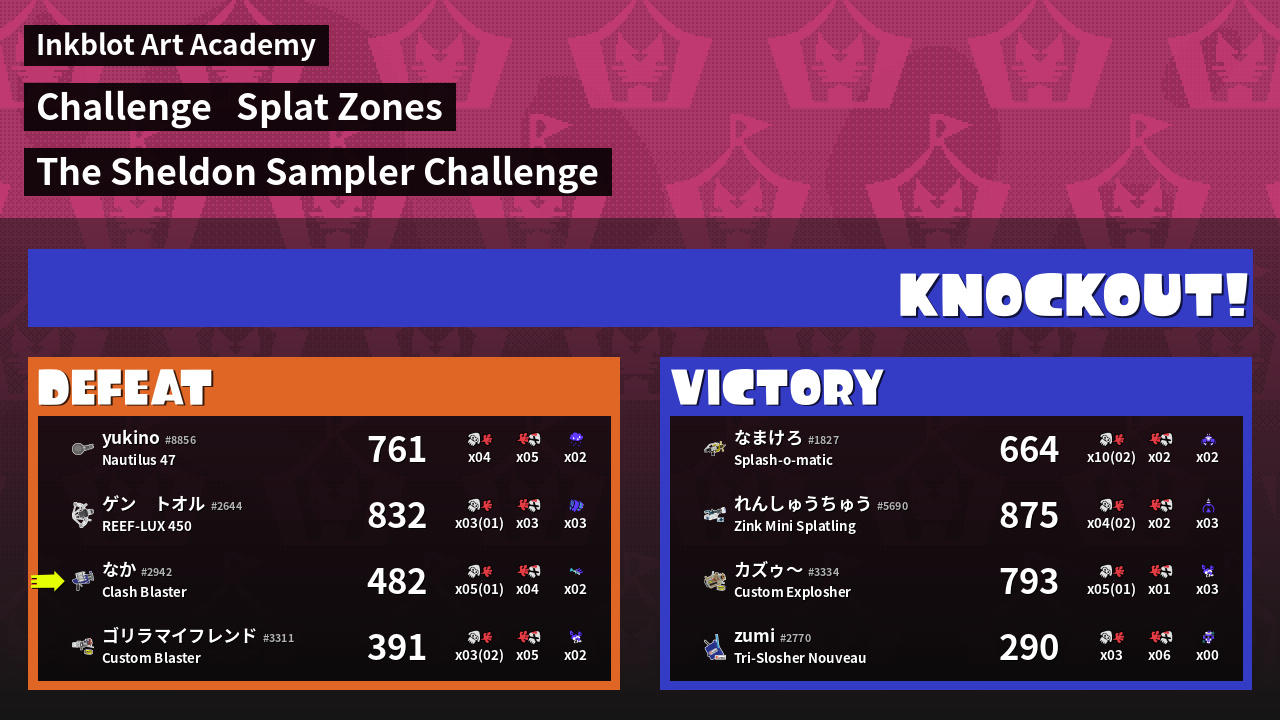 | Weapon | Clash Blaster ( Splat Bomb / Trizooka) | ||