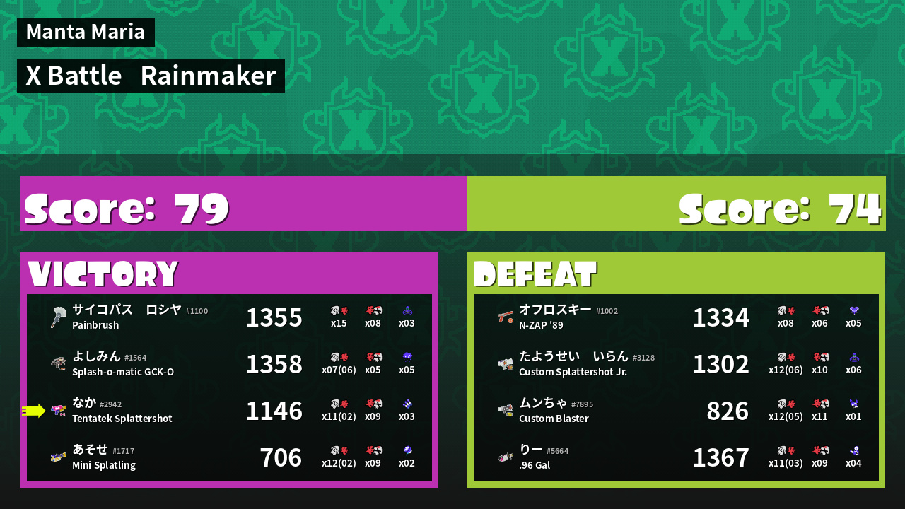 | Weapon | Tentatek Splattershot ( Splat Bomb / Triple Inkstrike) |