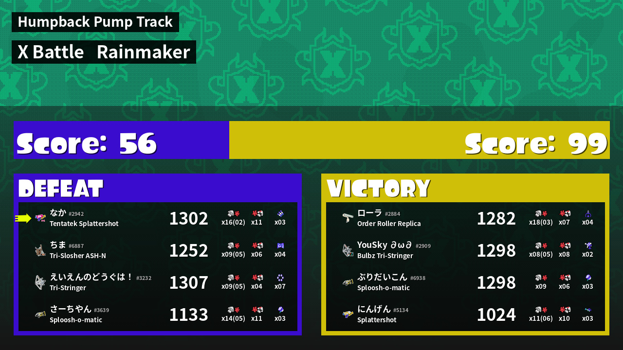 | Weapon | Tentatek Splattershot ( Splat Bomb / Triple Inkstrike) |
