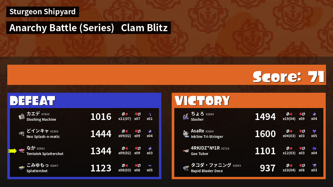 | Mode | Clam Blitz - Anarchy Battle (Series) | ||