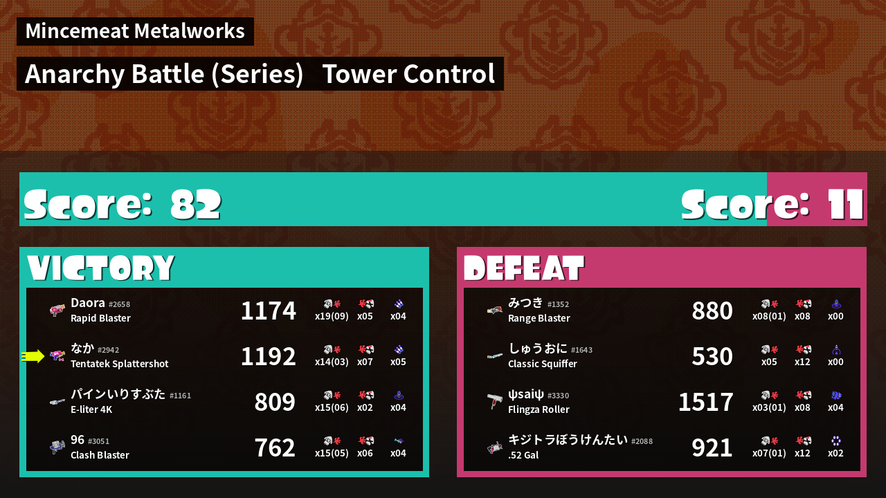 Kills / Deaths | 11 + 3 / 7 > Kill Ratio: 1.57 | ||
