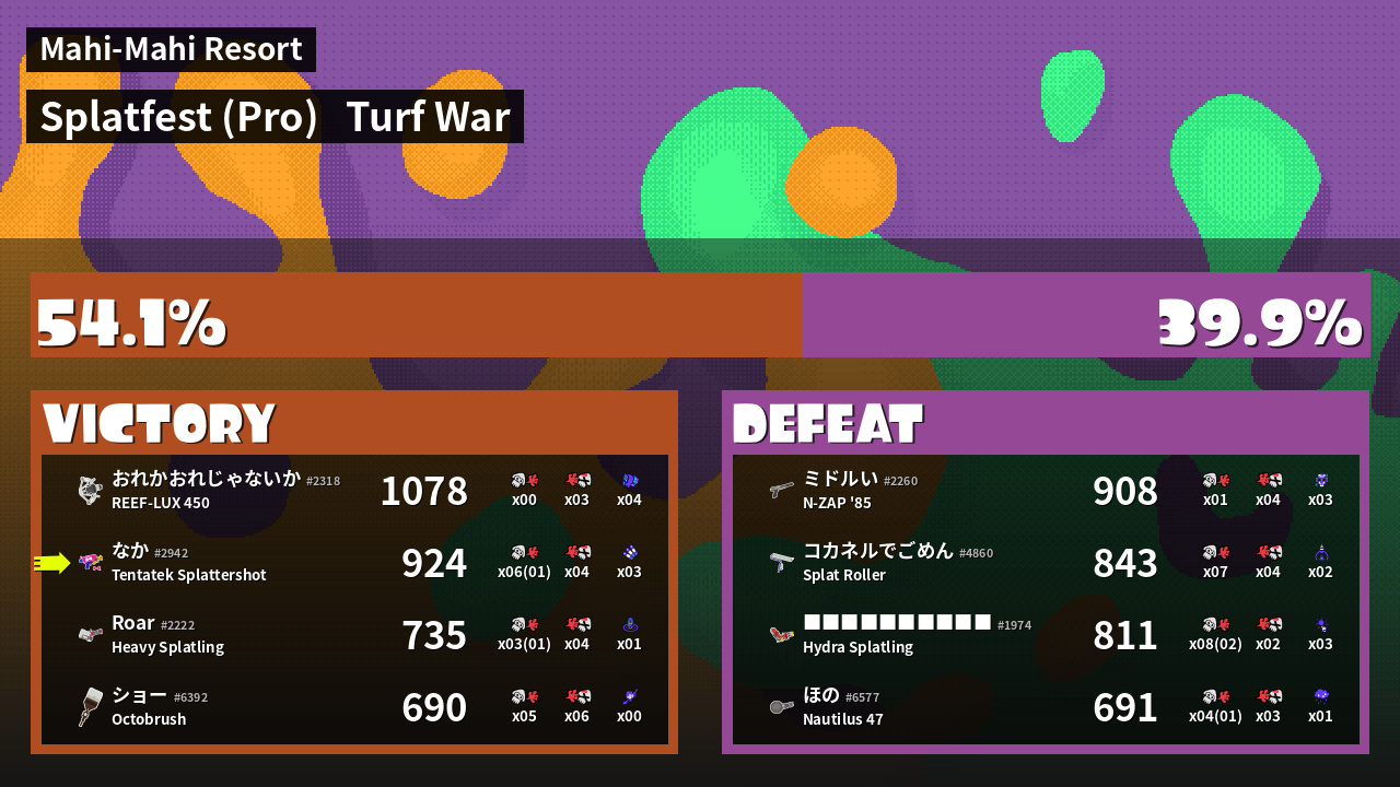 | Mode | Turf War - Splatfest (Pro) | ||