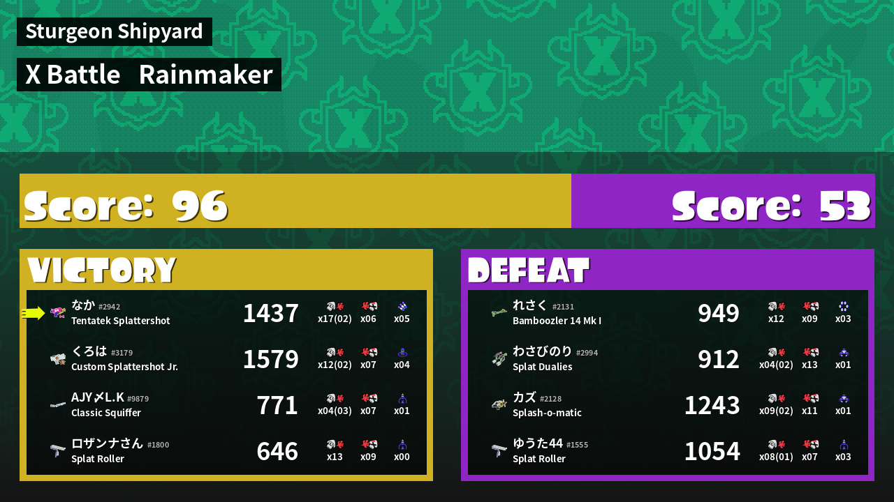 Kills / Deaths | 15 + 2 / 6 > Kill Ratio: 2.50 | ||