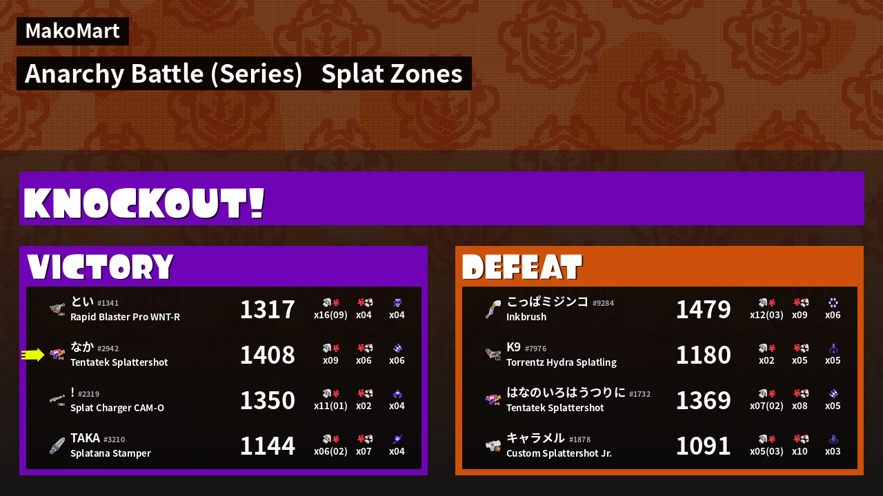 | Mode | Splat Zones - Anarchy Battle (Series) |