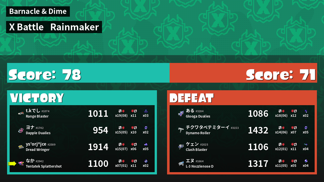 | Weapon | Tentatek Splattershot ( Splat Bomb / Triple Inkstrike) | ||