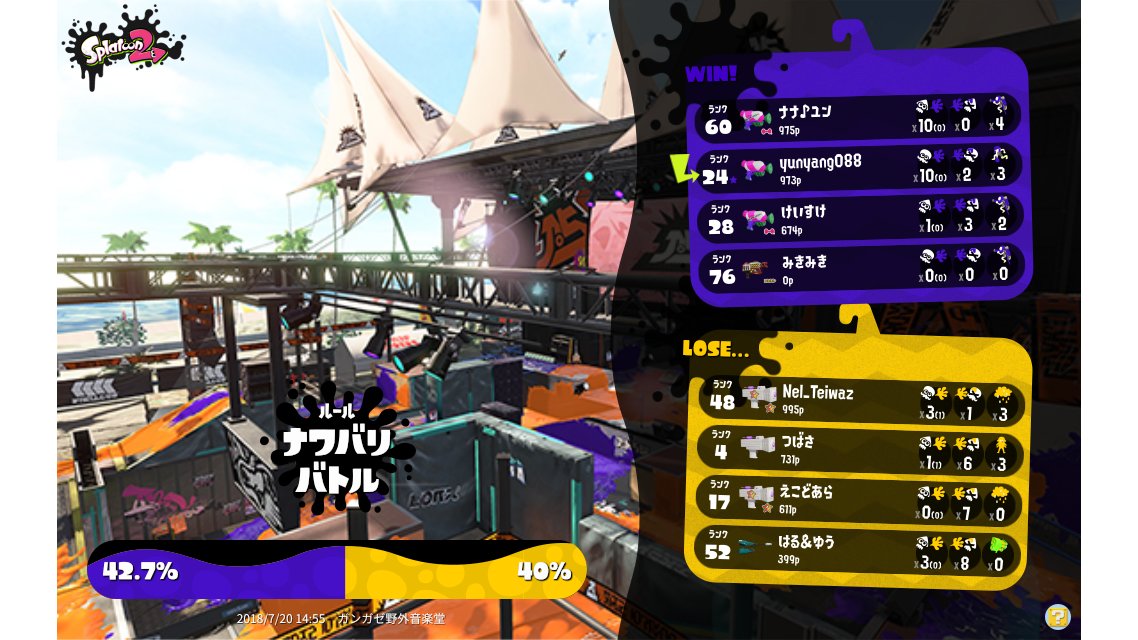 | Mode | Turf War - Regular Battle | |||||||||||||||||||||||||||||||