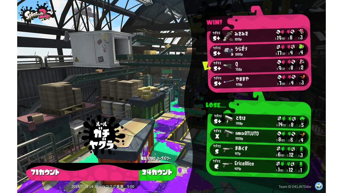 | Name | Weapon | Level | Rank | Inked | k+a/sp | k/d |