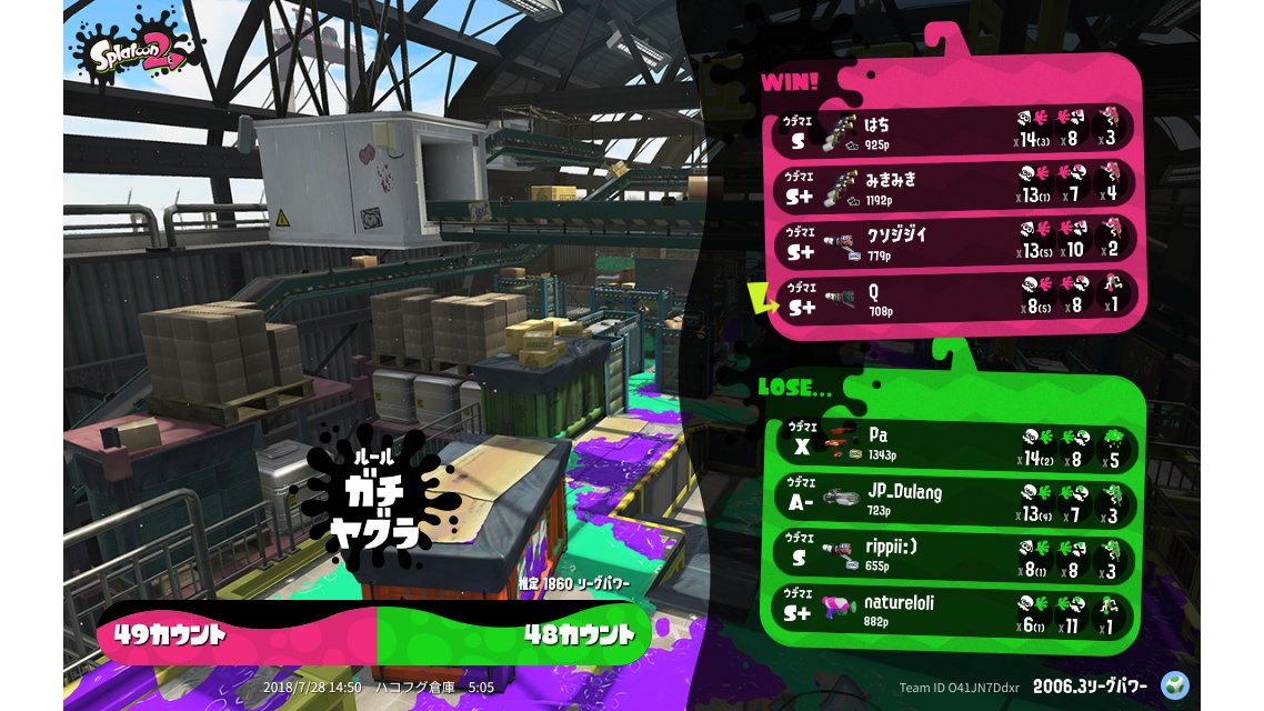 | Name | Weapon | Level | Rank | Inked | k+a/sp | k/d |