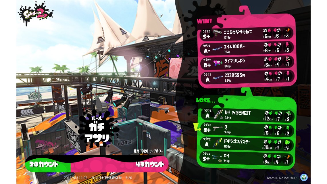 | Name | Weapon | Level | Rank | Inked | k+a/sp | k/d |