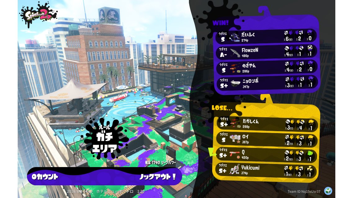 | Mode | Splat Zones - League Battle (Twin) | ||||||||||||||||||||||||||||